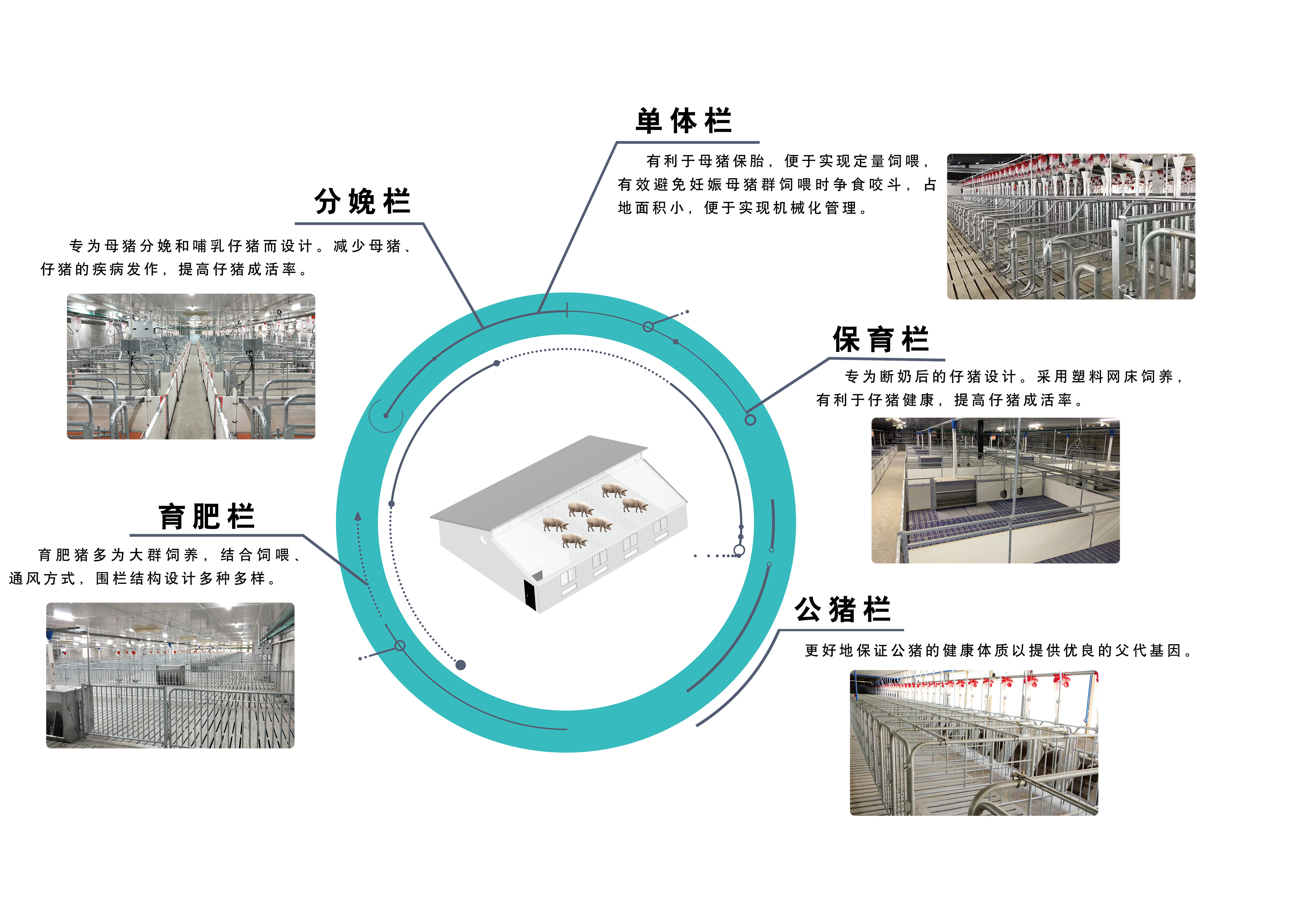 根據(jù)規(guī)模化養(yǎng)豬場(chǎng)的生產(chǎn)流程、豬的生理特征及習(xí)性,我們?yōu)椴煌A段的豬只量身打造了...